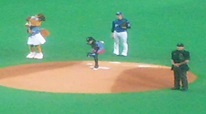 始球式は女優の萬田久子さんです( ´∀` )